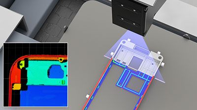 Die große Messbreite des 2530 ermöglichen die vollständige Erfassung mit einem einzigen Sensor (z.B. Handy-Gehäuserahmen). Dank des großen Messbereichs und der Messbreite kann der Sensor eine größere Anzahl von Messobjekten erfassen.