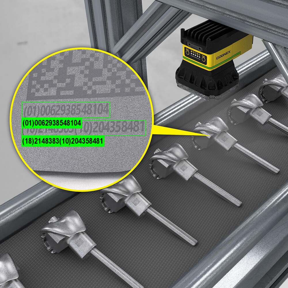 Unsere Komplettlösung ermöglicht Lesungen von DPM-Codes auch unter schwierigsten Verhältnissen sowie eine prozesssichere und schnelle Erkennung auch von kleinsten direktmarkierten und genadelten Codes.